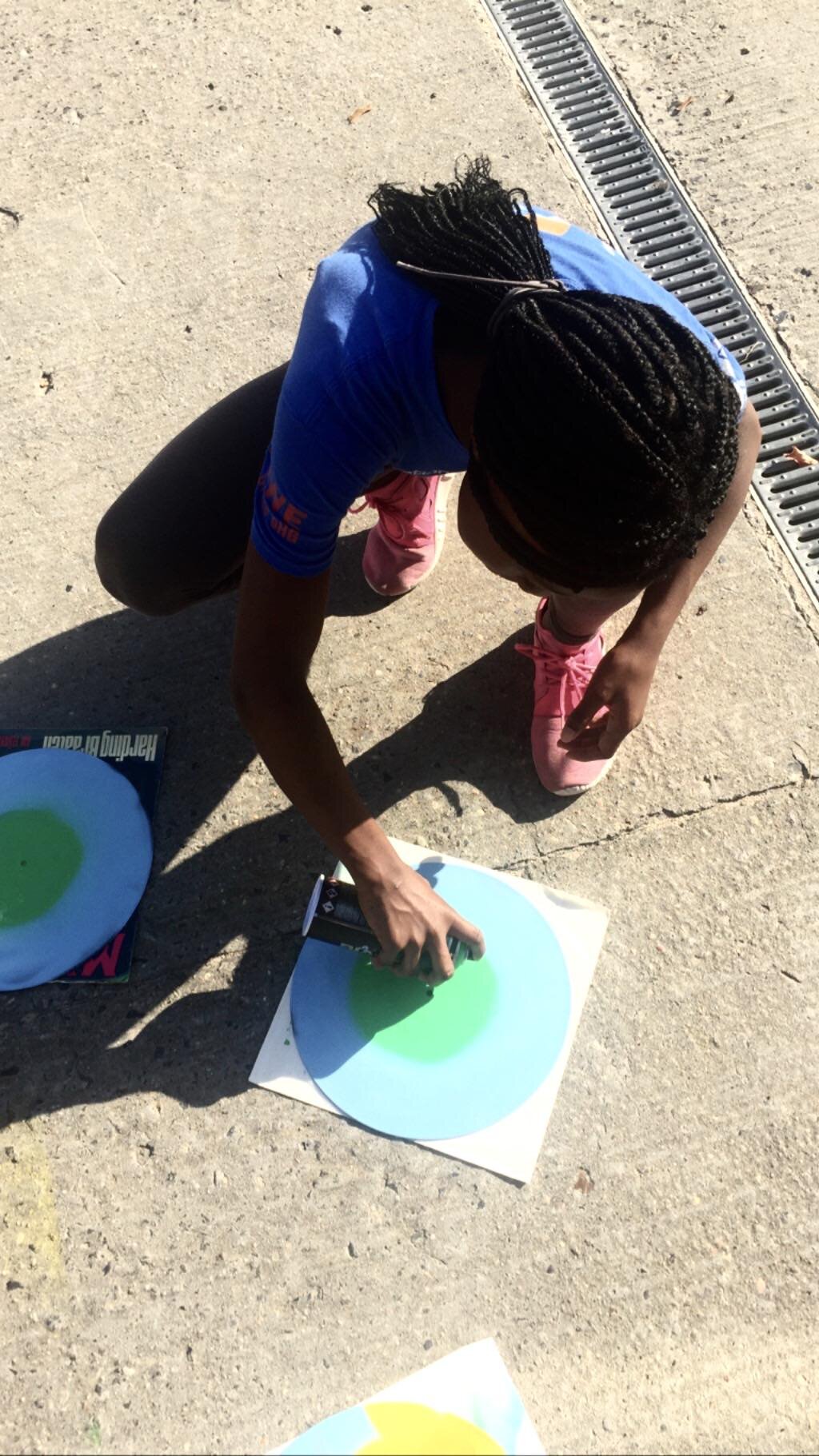 Innerhalb eines Projektkurses plante und gestaltete ich mit Schüler*innen der 8. Klasse die Wand ihrer Mensa. Das Motiv entwickelte sich aus Zitaten der Schulnamensgeberin Hannah Arendt, aus der Gemeinschaft beim Mittagessen und aus dem Stadtteil, in dem die Schule ist.